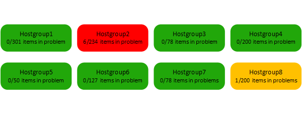 This high level view of a monitored environment is called Executive Dashboard in RealOpinsight terminology. In you setup host group-based dashboards, you will be able to have Executive Dashboards looking as hereafter. You will be able to see how that works when going further in this document.